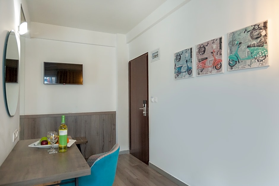 Featuring modern wooden furnishings and light colors, this suite consists of a bedroom with double bed, separate living room and bathroom with bath and shower. It also consists of: -2 TVs -refrigerator -2 working desks. Please note that a room featuring bathtub in the bathroom can be allocated upon request.